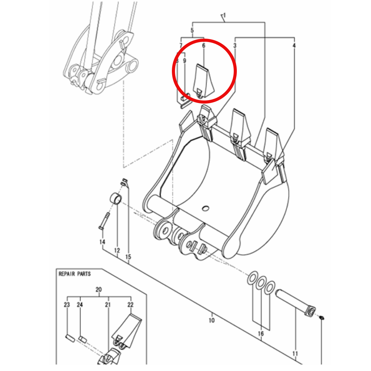 Dente da Caçamba para Equipamentos Yanmar