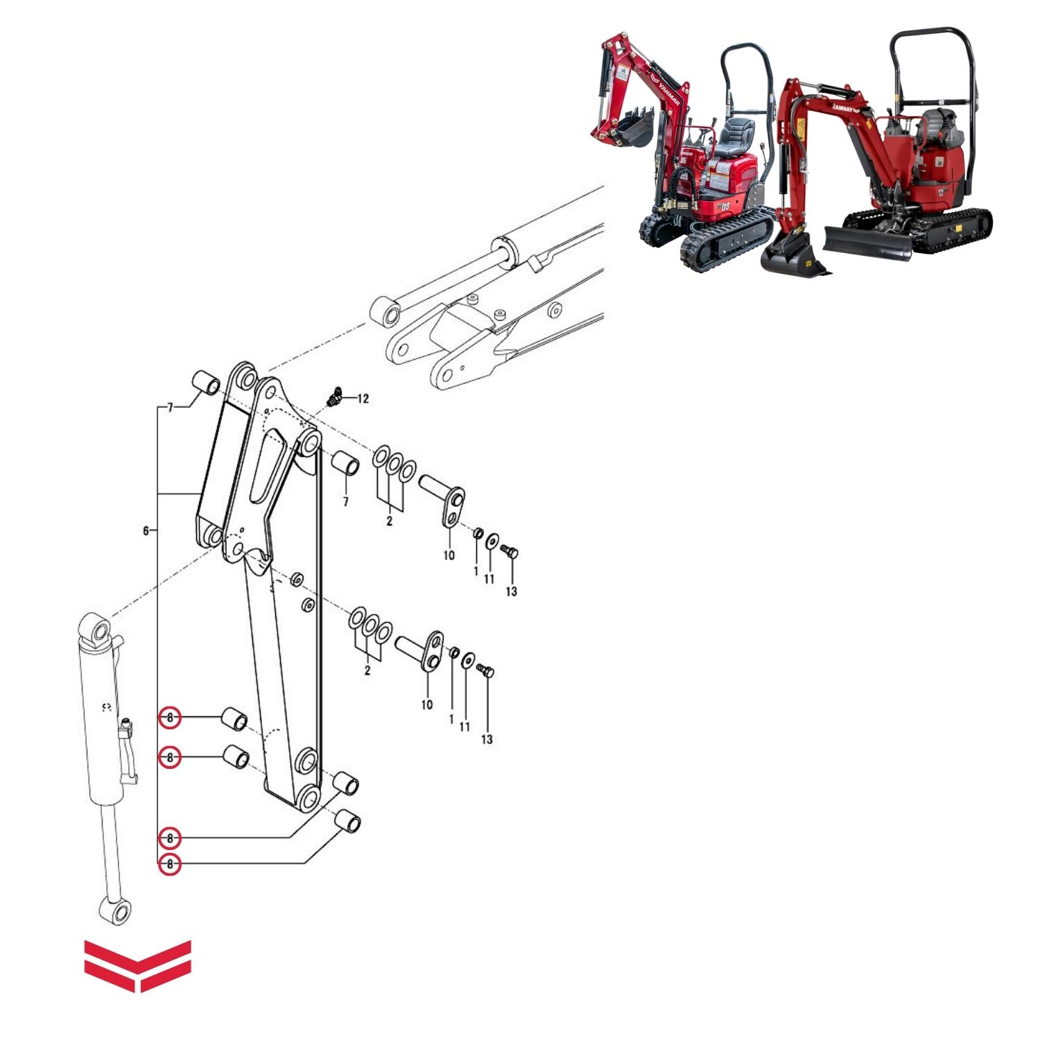 Bucha do Pino da Articulação da Concha para Mini Escavadeira Yanmar SV08 e VIO12